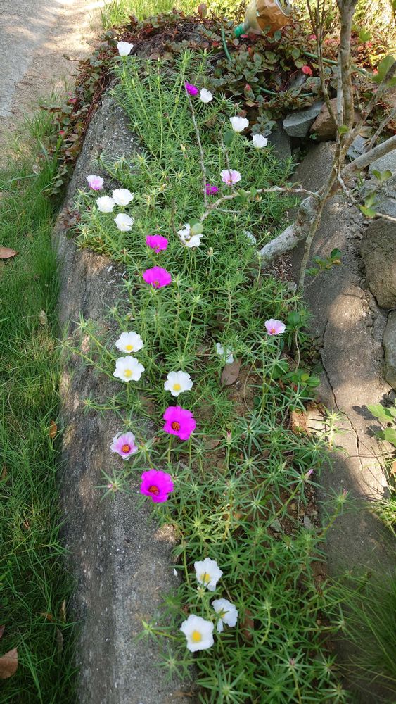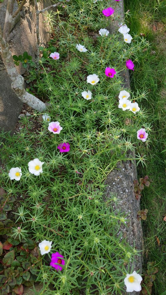 小さな庭,ポリゴナム(ヒメツルソバ),大輪咲き松葉牡丹の投稿画像