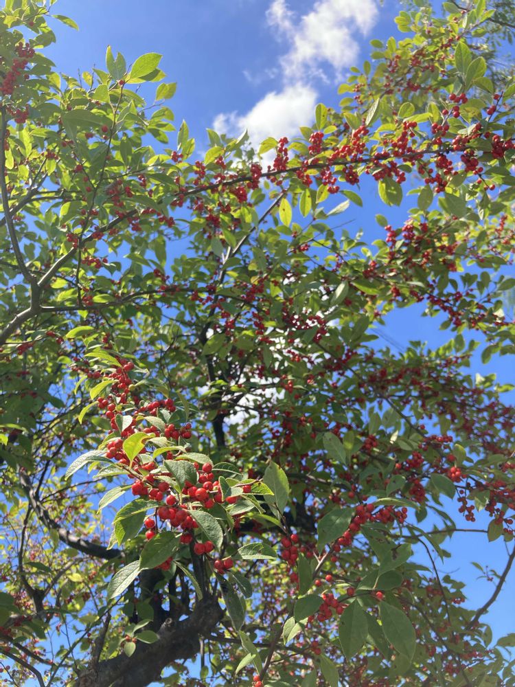 いつの間にか赤い実がいっぱいで、空は青くて眩しくて🤭