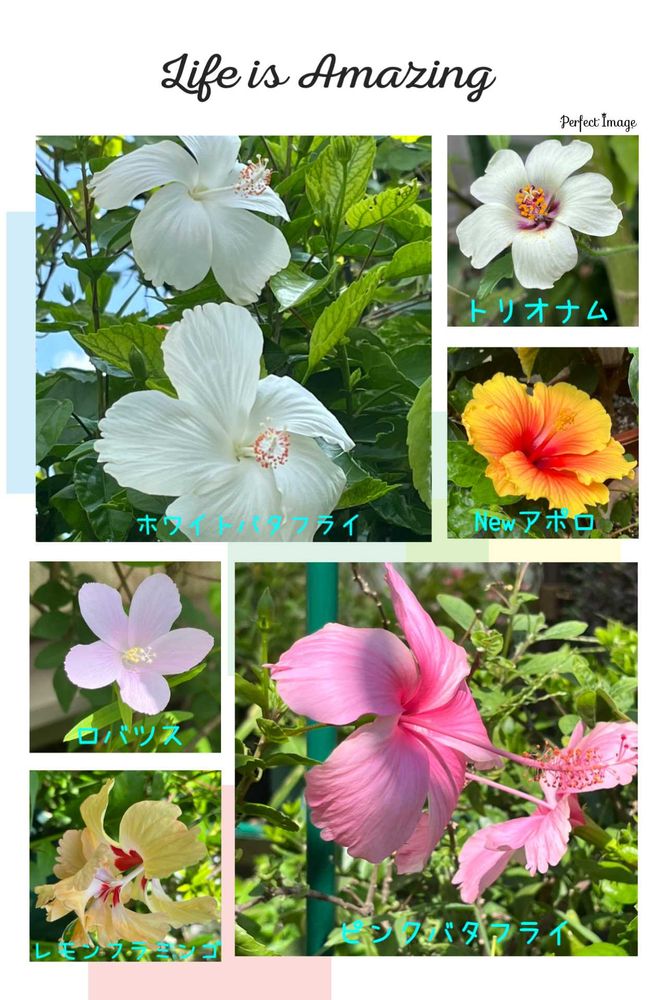 わあ〜いっぱい咲きましたね なじみのハイビスカスですが毎日違う花のようですよ(*^ー゚)b クッ゙