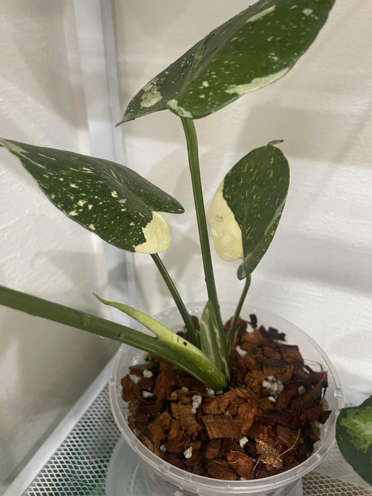 2025.8月に某サイトで購入した【アロカシア チャイ】の 突然変異?なんだろう 購入時、元々有った葉を(1枚目の葉)として、 下から新たな葉が出てきてる状態で到着しました(2枚目の葉) こちらに来て初めて出てきた葉に異変が。。 育て始めて出てきた初めての3枚目、4枚目 (途中から、斑1、斑2、、と続きます) どこまでこの謎の斑入り葉が続くのか、 いや止まるのか……記録していきます