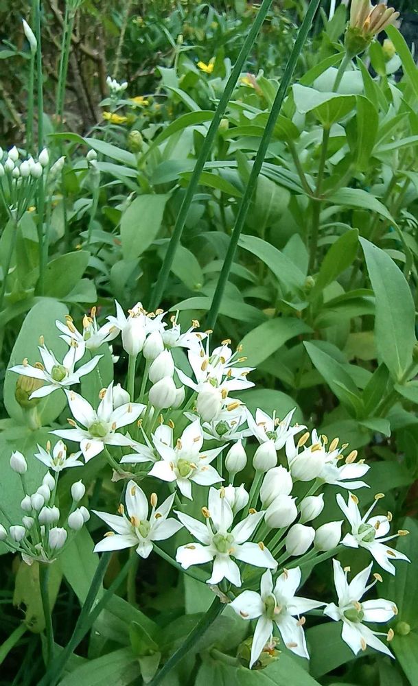 🤍ニラのお花さん👀めちゃめちゃ綺麗ですねぇ💁🏻♀後ろに💛ジニアさん(๓´˘`๓)♡