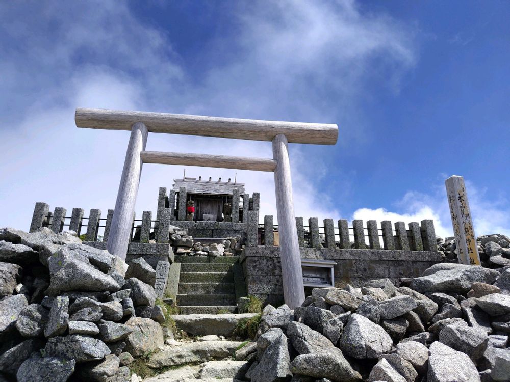 山頂には小さいな神社「木曽駒ケ岳神社⛩️」があり無事登頂の感謝のお参りをしてから標識に立ち記念撮影です📸