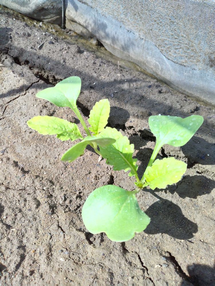 9/2に播いた大根と白菜が出揃ったので、2本立ちにして、