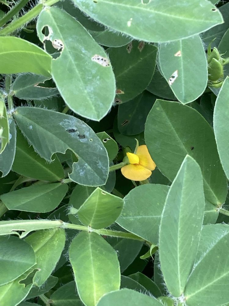 自然大好き派です。なぜかいつもの公園近くの農道に咲いていました。写真のように葉がたくさん茂り奥に小さな花が咲いていました。二枚目に花のアップを載せました😊。マメ科らしい蝶🦋型の花です。