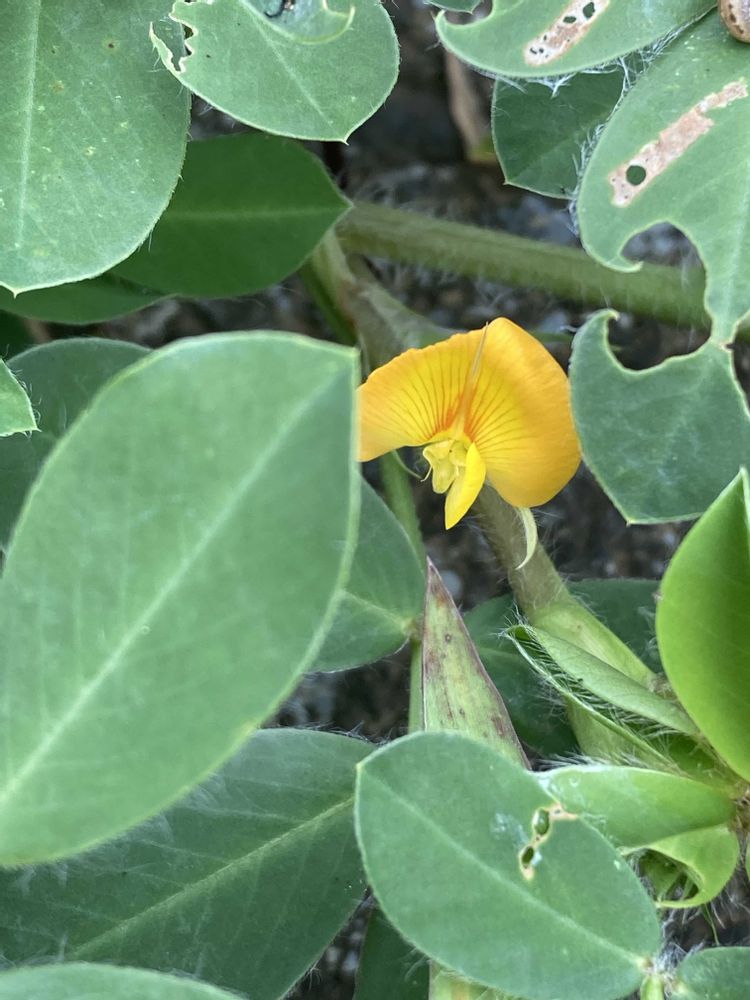 名前の落花生は花が咲いたあと、子房柄を伸ばして地中に潜って実をつけることはとても有名ですが、この不思議さは育ててみないと分かりません😅。栽培当初、花後に実がつかないので怒った農家の人が「役立たず」と株を蹴り上げたら地中から鞘が出てきたのは有名な話です。