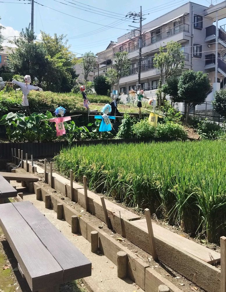 1️⃣近くの小学校3校で作っている水田です。案山子さんが見守っています☺️
