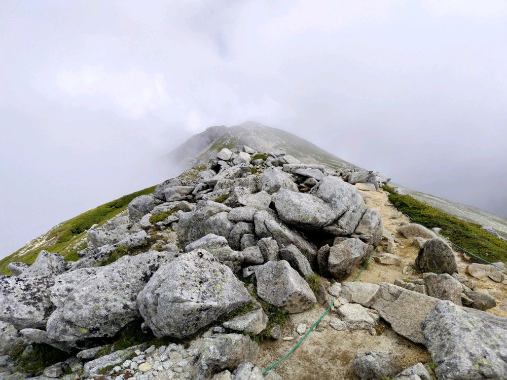 大半の登山者が来たルートを戻る中で、写真5枚目の馬の背と呼ばれる尾根伝いのルートを歩き始めました🚶