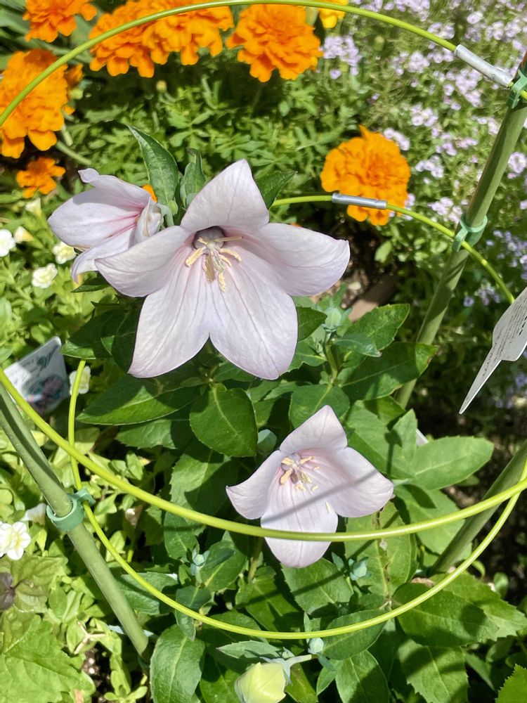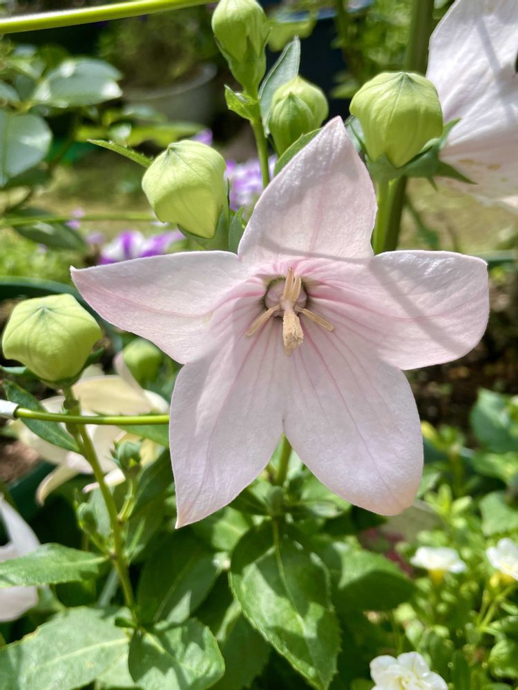 淡い ピンクのキキョウ お日様に透けて優しいですね🩷♪