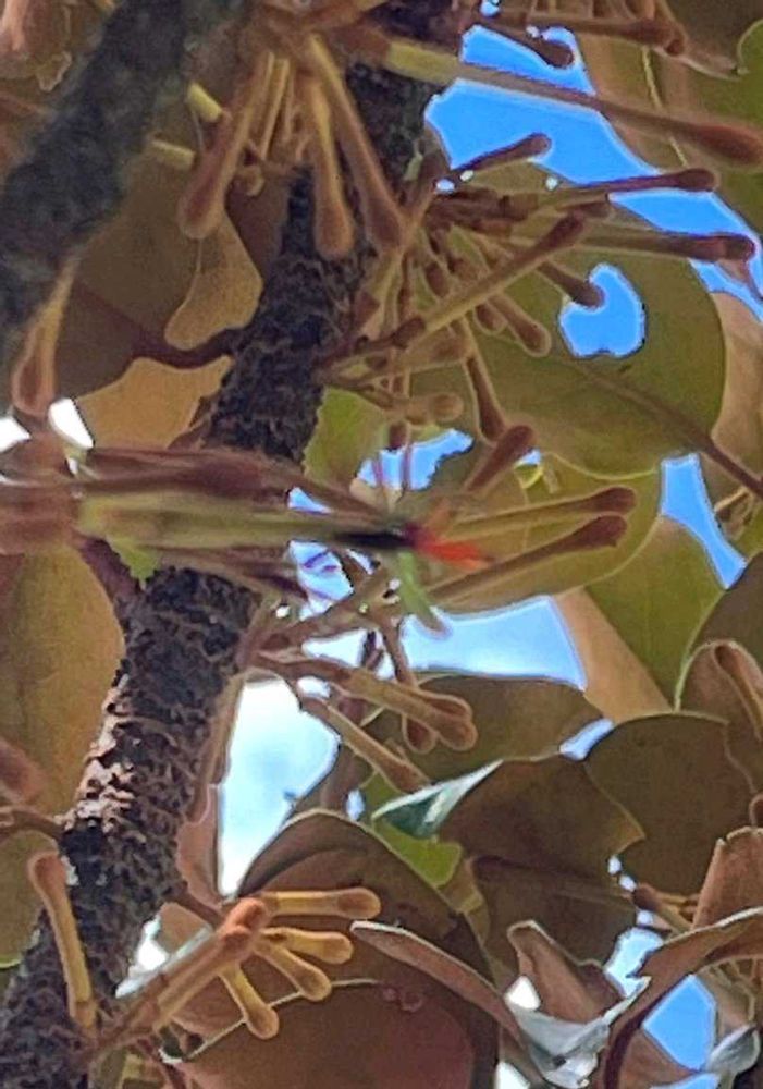 完全にボケていてわかりませんが変わった形の筒状の花が咲きます
