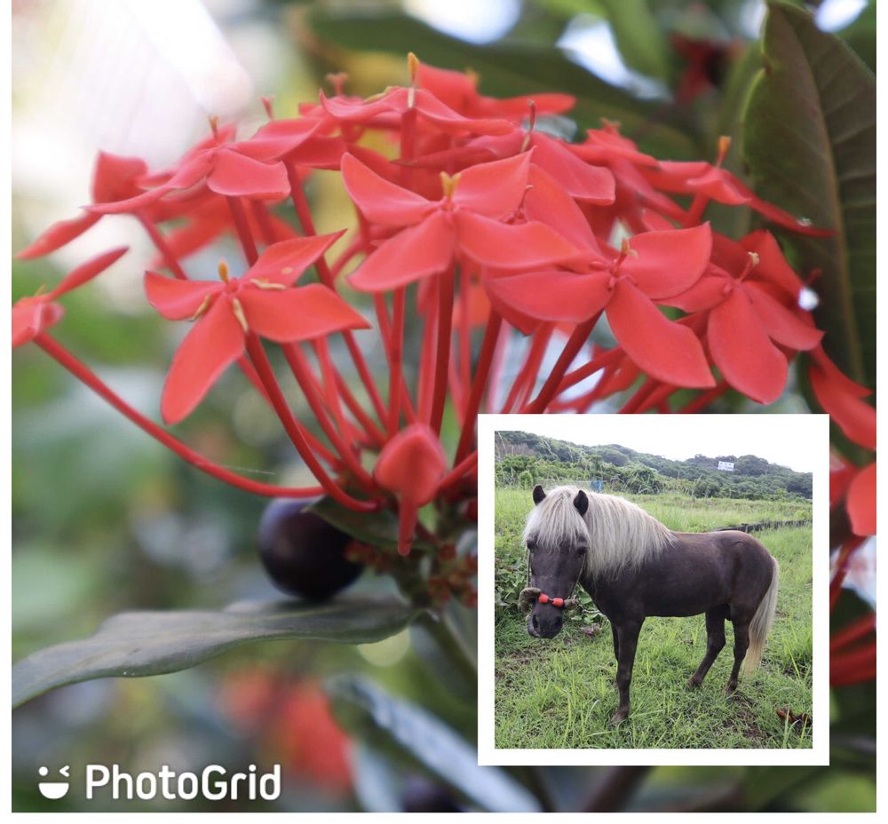 雄馬さん🐴をの鼻輪は山丹花のお花とおそろいの赤🔴🔴