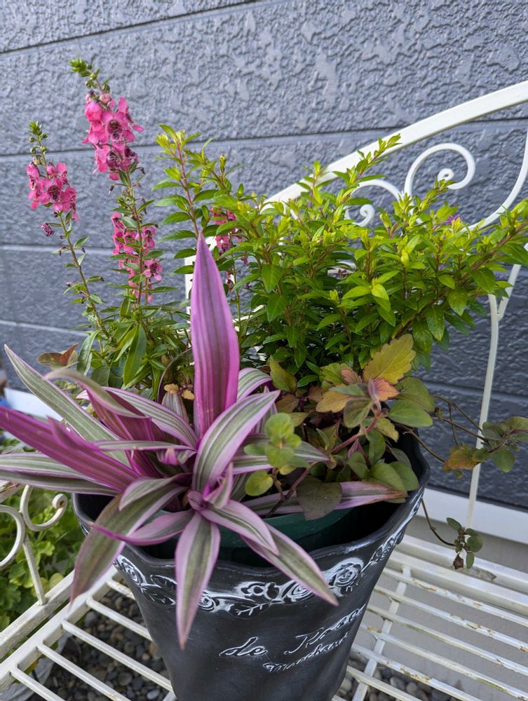 ムラサキオモトはお日様にあてたほうがストライプがよく出るらしく、お日さま好きのクフェアとピッタリでした