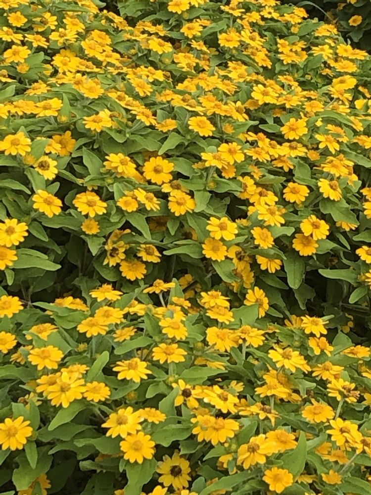 池の近くの花壇にて、黄色いお花「メランポジューム」をパチリ!📸🌼🌿😄🤗🌞✌️