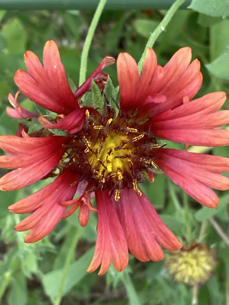 赤色の放射状に伸びた印象的なキク科の花🌸