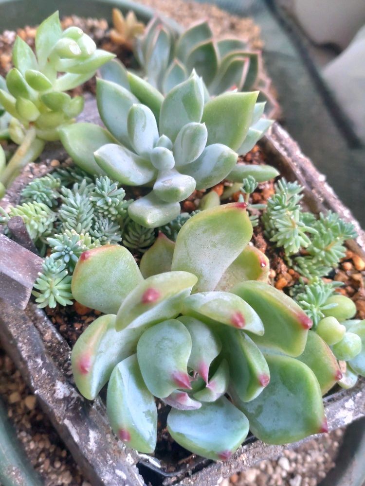 多肉がかじられていて😢葉っぱを取って植え直しました。バッタがいたのは見たんです。