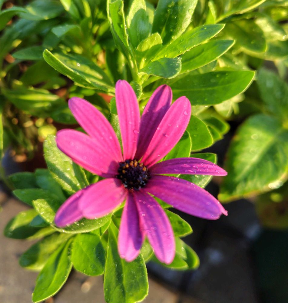 早朝ウォーキングから帰宅して、ひょいと目をやると、オステオくんが1輪咲いていました😊