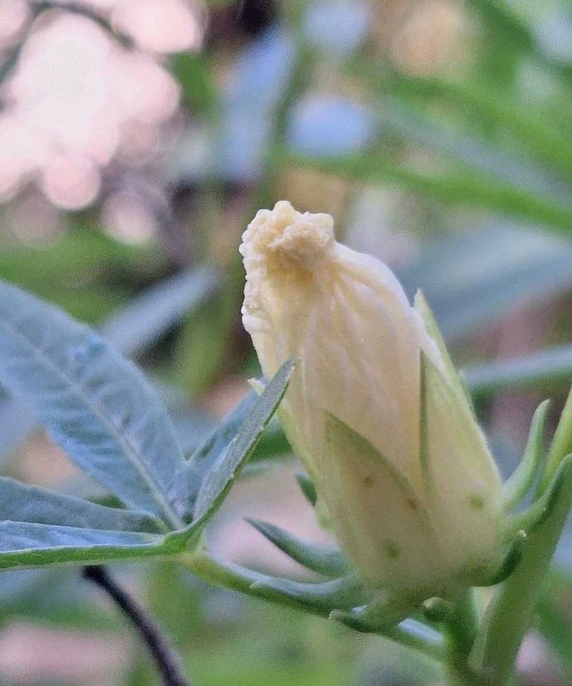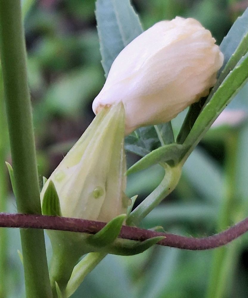 開花 ,ハイビスカスローゼル 白,蕾が開いてきてますの投稿画像