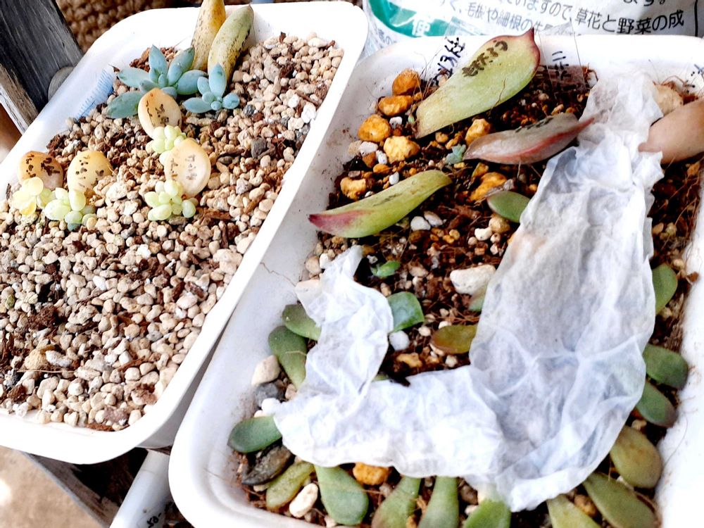 3 4: YouTubeのたまちゃんず農園さんで面白い葉挿しの実験してたので真似っ子してみました(*´ ˘ `*)ウフフ♡