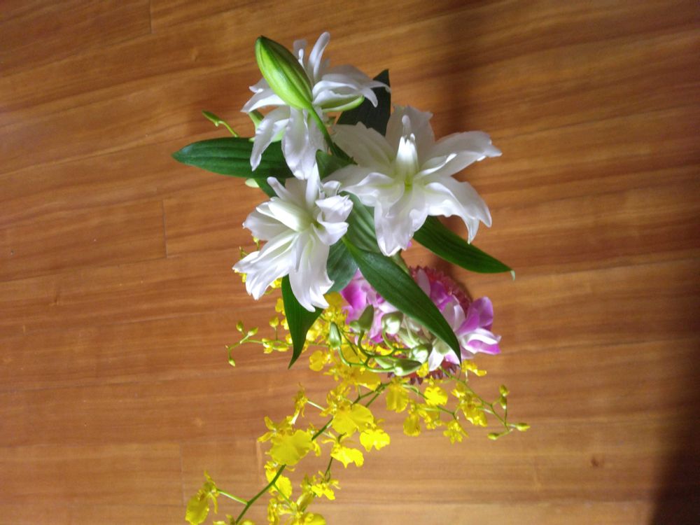 純白 オリエンタルリりー,ピンク色 デンファレ,黄色 オンシジュームの投稿画像