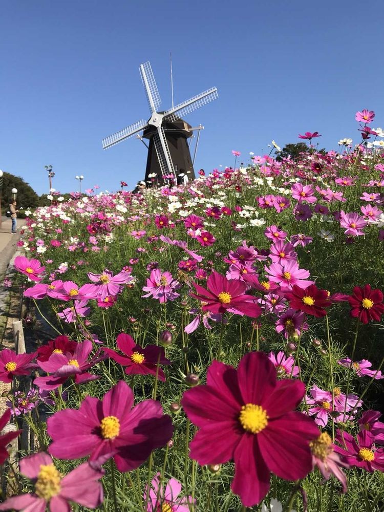 ①②花博記念公園鶴見緑地「風車の丘」風車とコスモス