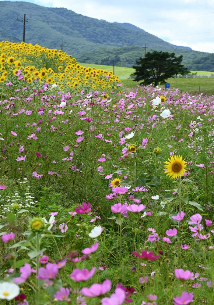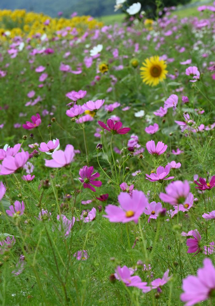 広々としたところにコスモス畑、ひまわり🌻も咲いて素敵な景色です。