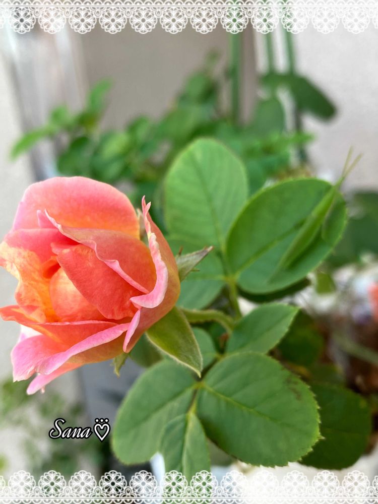 黄色💛とピンク🩷の色合いがとっても可愛い四季咲きバラ·̩͙❀⸒⸒