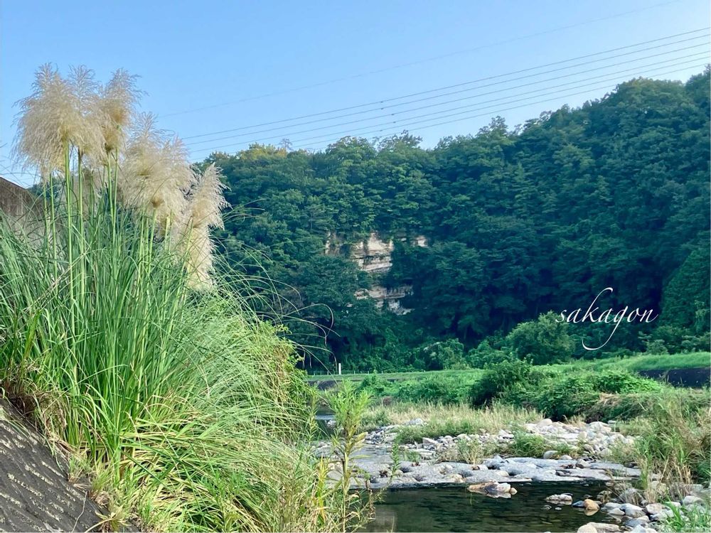 川沿いの土手には、ひとり生えのパンパスグラスが風になびいていました🌾