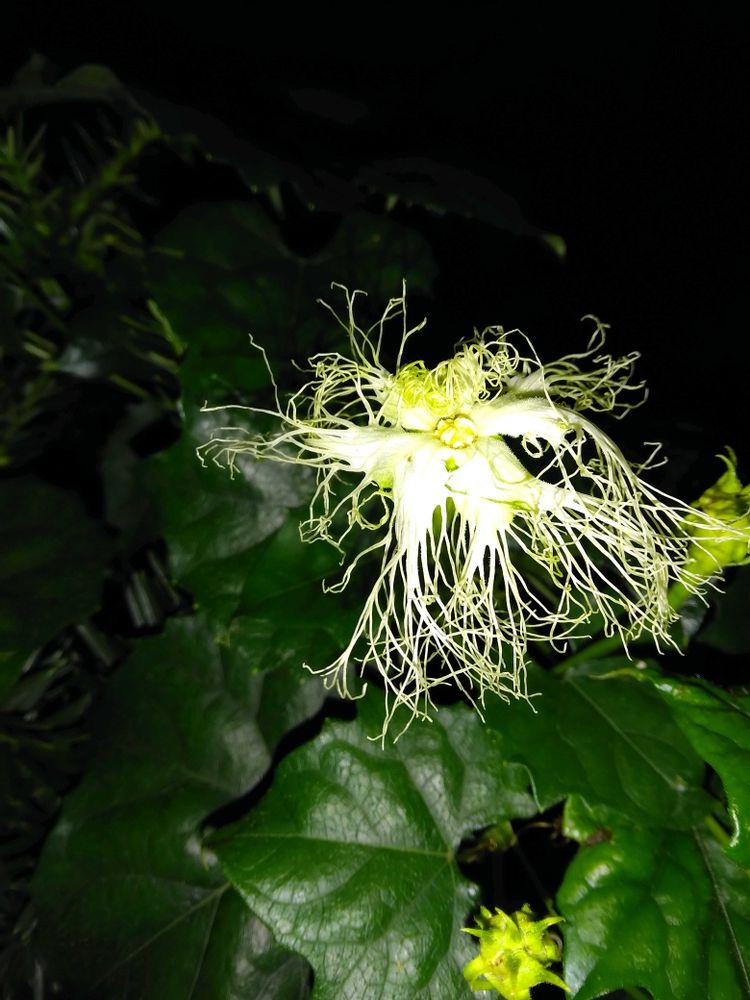 仕事帰りに行った虎(🐕🦺)の散歩 暗くて怖いなーと思いながら歩いていたら 思いがけず 近所でカラスウリの花が咲いているのを発見 怖いのも吹っ飛んでテンション⤴️キレイねぇ~😍