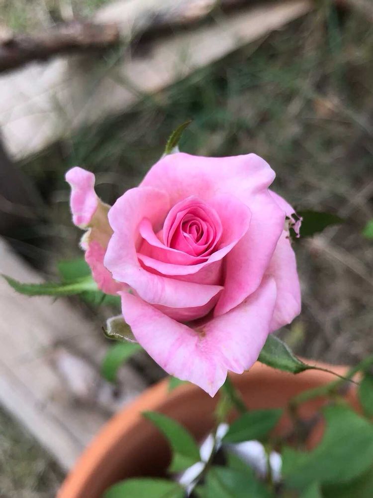 春には全然咲かなかったピンクのバラが何かを思い出したように小さな蕾をつけ、やっと咲きました💖