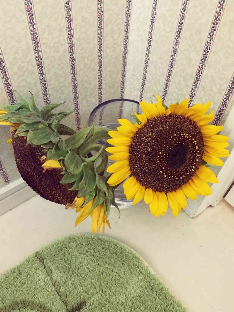 息子が育てたひまわり♡虫食いも酷いけどなんかそれも良いね!🤗