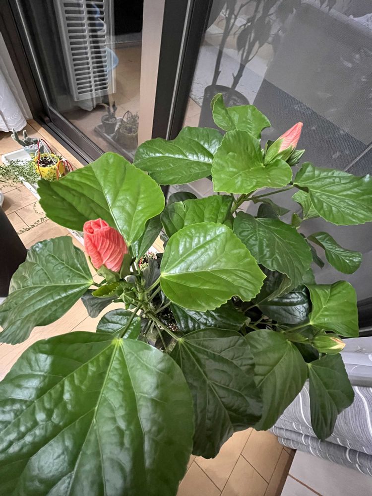 今日は風が強めなのでハイビスカス蕾が落っこちないよう💧部屋に置きました😥