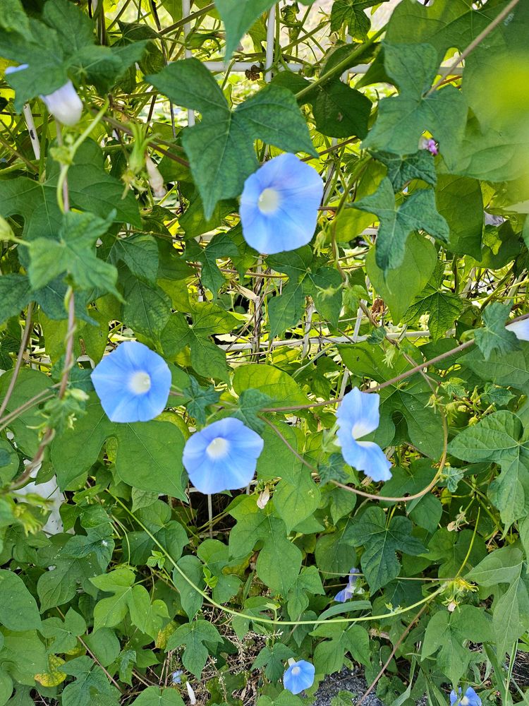 おはようございます。道端で咲いてたお花達でハツユキカズラすとても綺麗でパシャリと撮りました。後はマルバアメリカアサガオ等見てくださいね✌