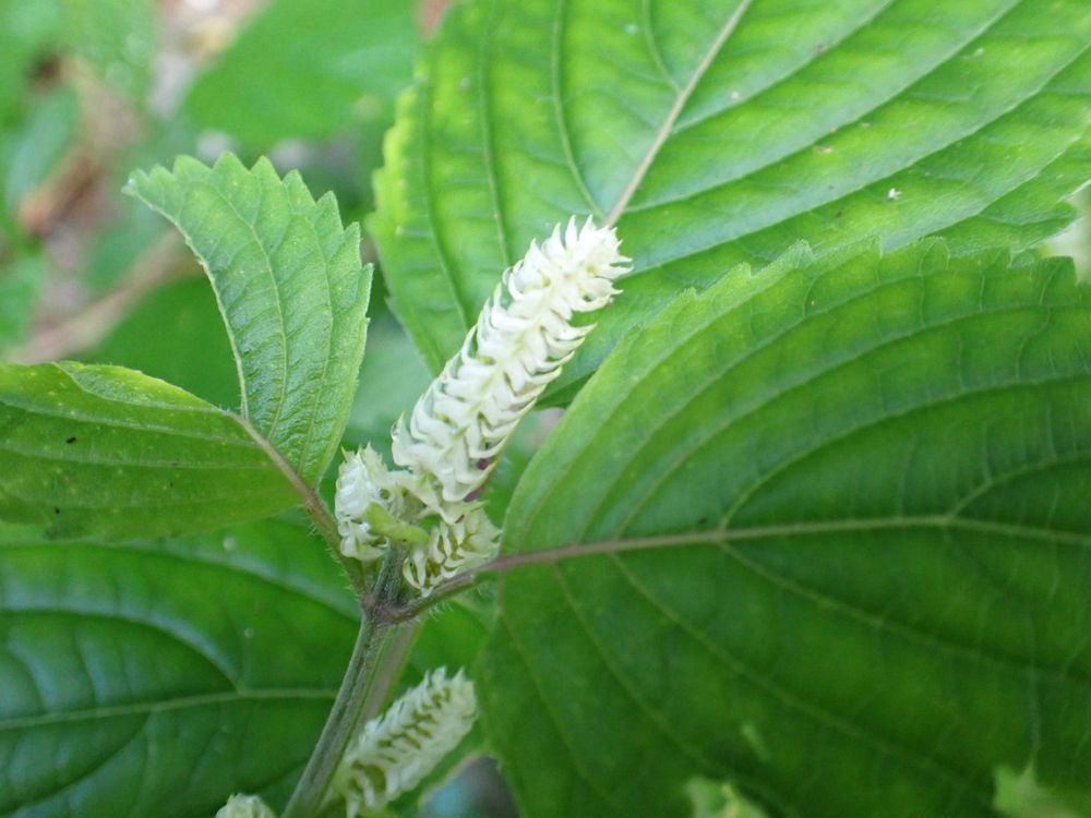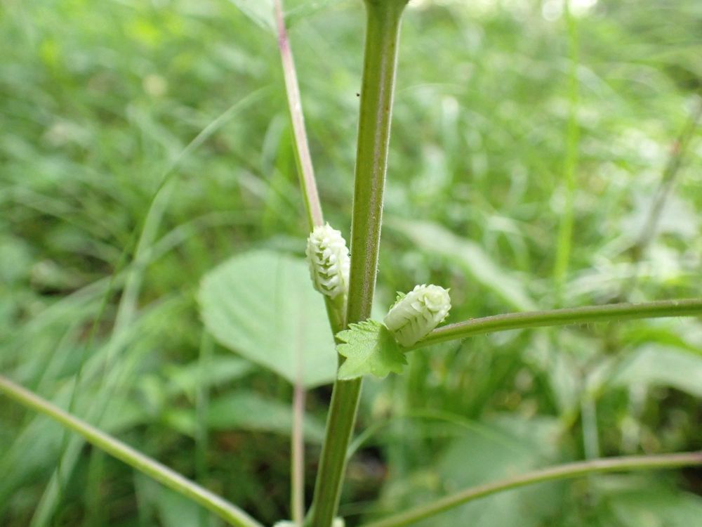 まだ苞で蕾を包んでいる姿の、レモンエゴマが、たくさん。(①)