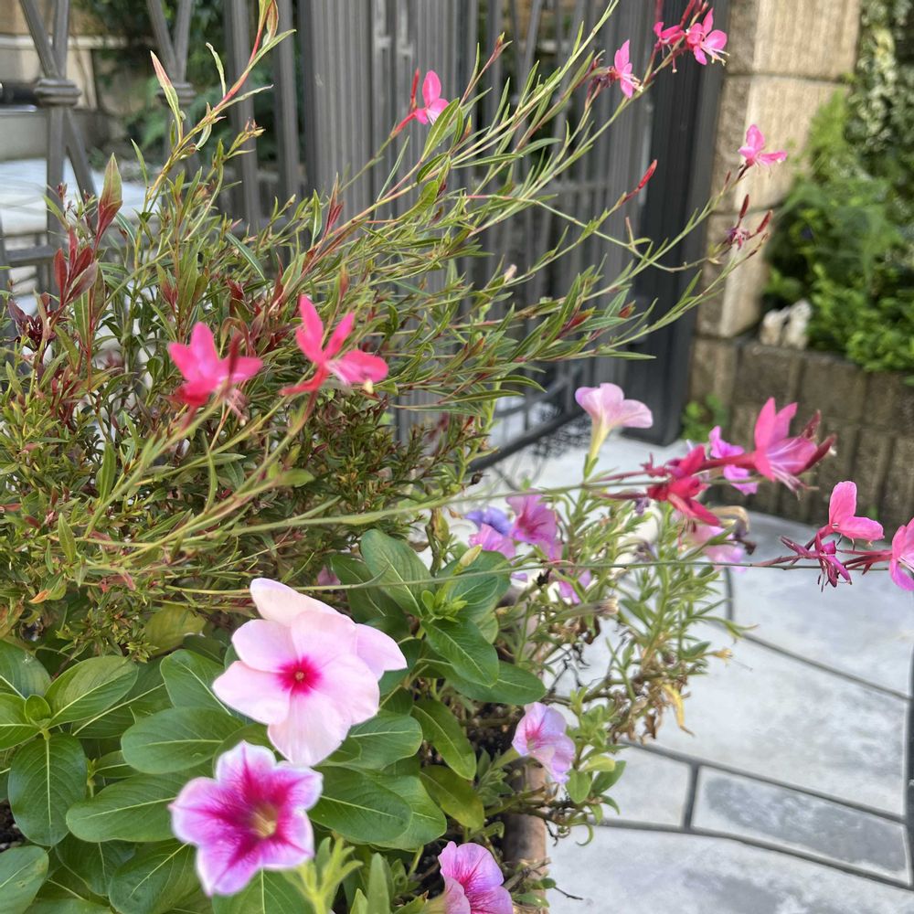 ここでガウラは寄せ植え2回目ですが、動かせない植木鉢で西日ガンガンの所では夏咲きませんでした🥲