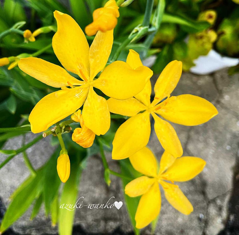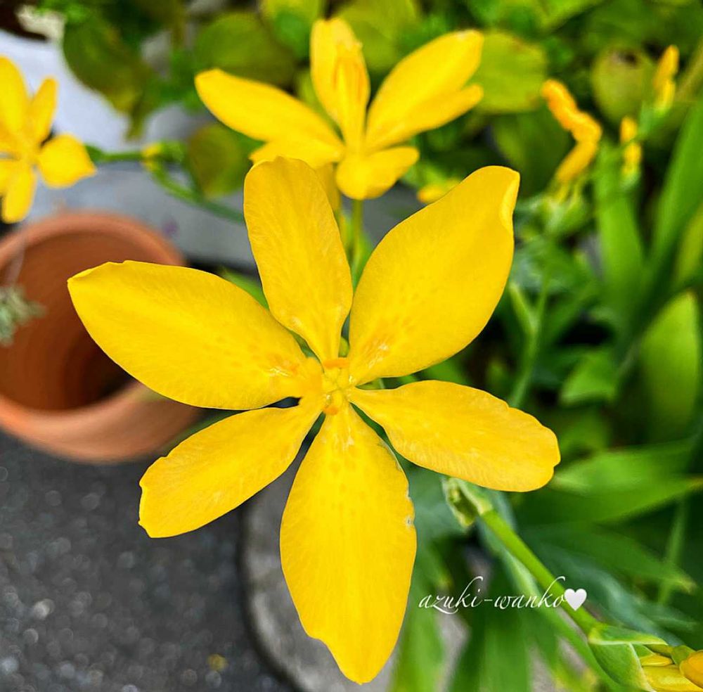 キバナヒオウギ(学名: Belamcanda chinensis‘Hello yellow)の花🌼🌿🌼