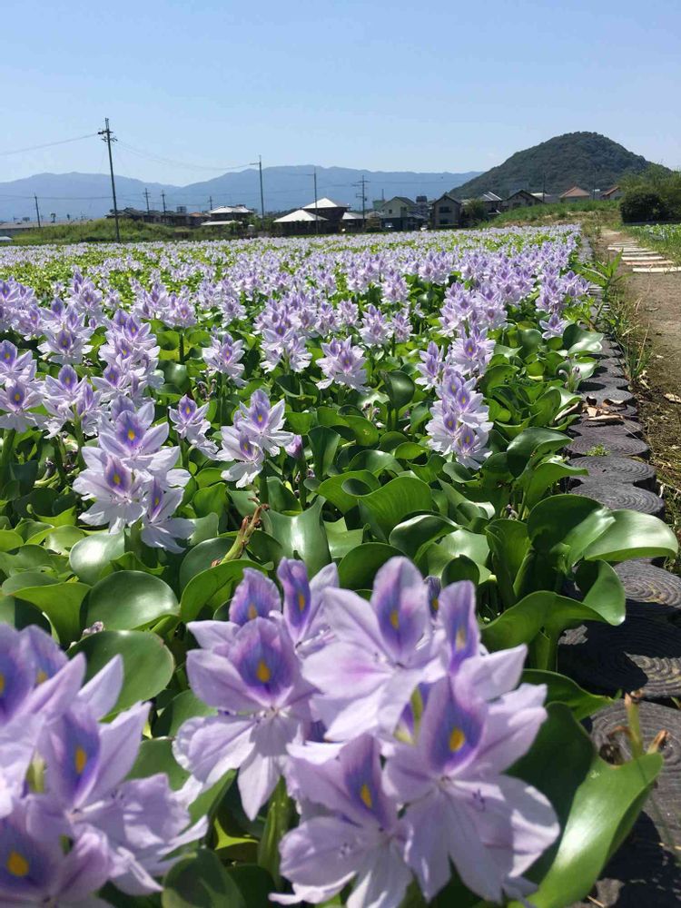 クッキーさんおはようございます。いつもいいねしていたきありがとうございます😊ホテイアオイですか?畑一面に広がる紫の花綺麗です💕😍水草でホテイ(о´∀`о)⁇に良く似ている花ですね(^-^)