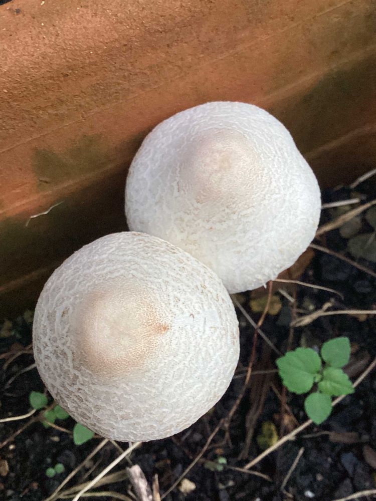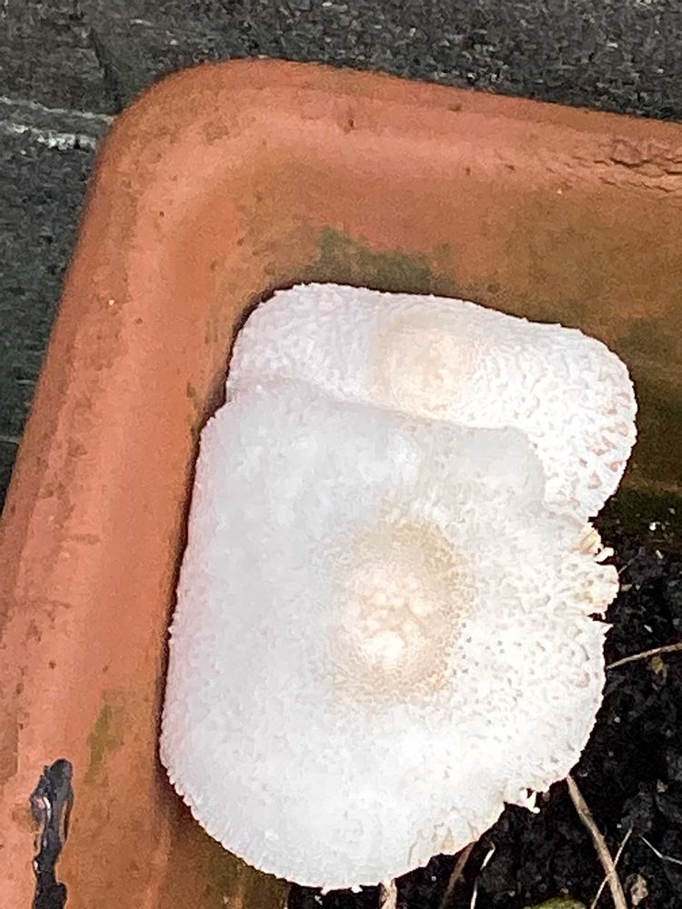 うちにも、3日くらい前に突然はえました!同じかも。真っ白なきのこ。