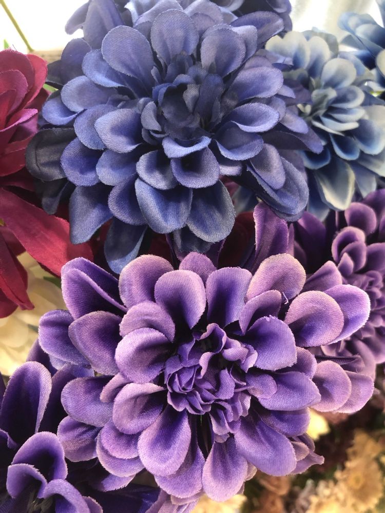 青色と紫色の「ダリア」と黄色の「バラ」をパチリ!📸💙💜💛😄🤗✌️