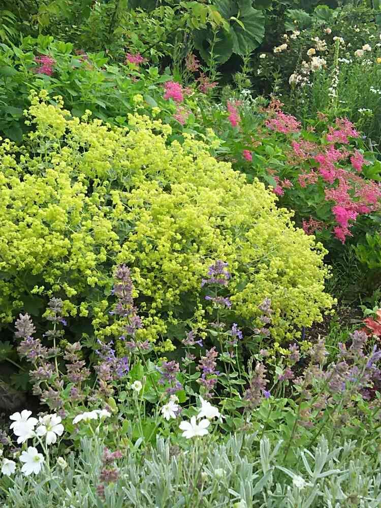素敵なお庭🌿 アルケミラモリスのライムグリーンが綺麗ですね✨