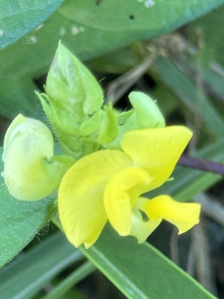 土手の一部をヤブツルアズキが覆うように蔓を伸ばし、小さな可愛い黄色い花を付けています。