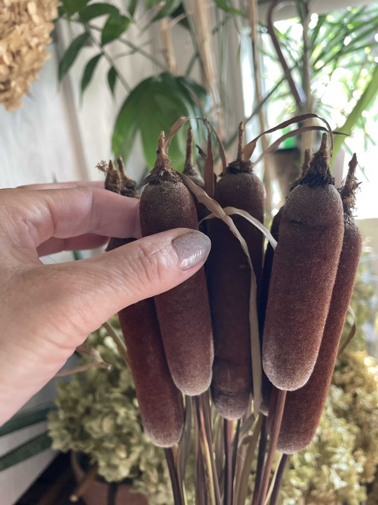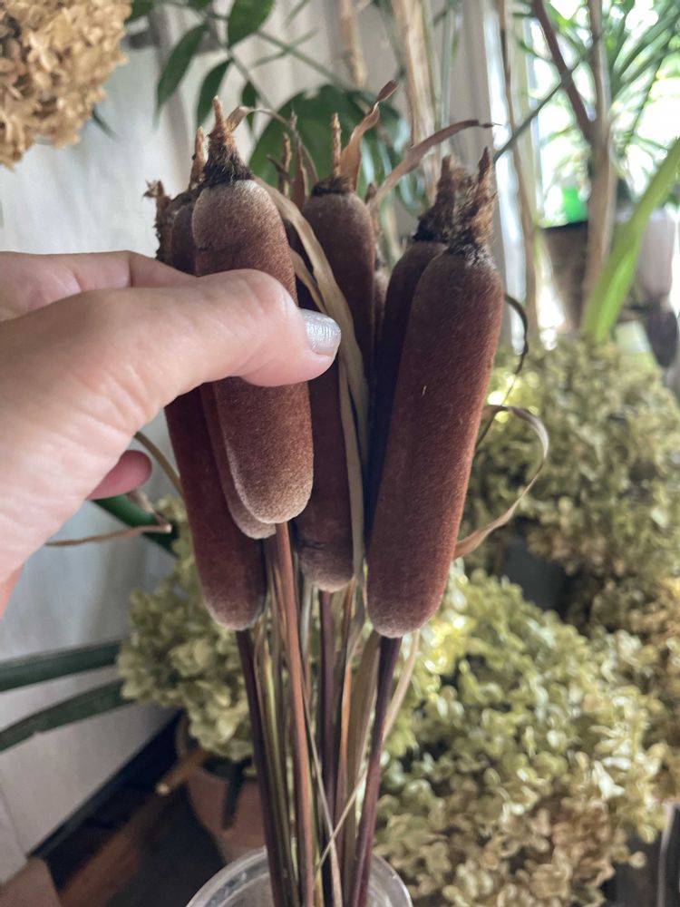 頂いたガマの穂モミモミしてみましたがまだ爆破しなそうです🤭