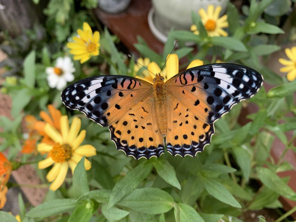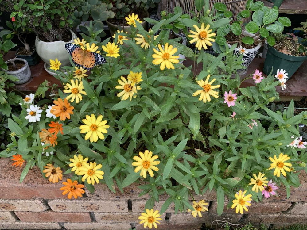 連休最終日は時折雨が降り湿度が高くてムシムシ😣そんな中ジニアにツマグロヒョウモンが遊びに来ました🦋