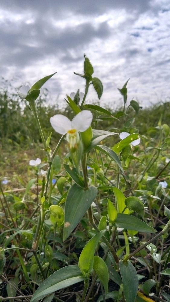 後ろにチラッと青いのが見えますが、良く見かけるツユクサです。白いツユクサって珍しいんでしようね。有り難うございました。