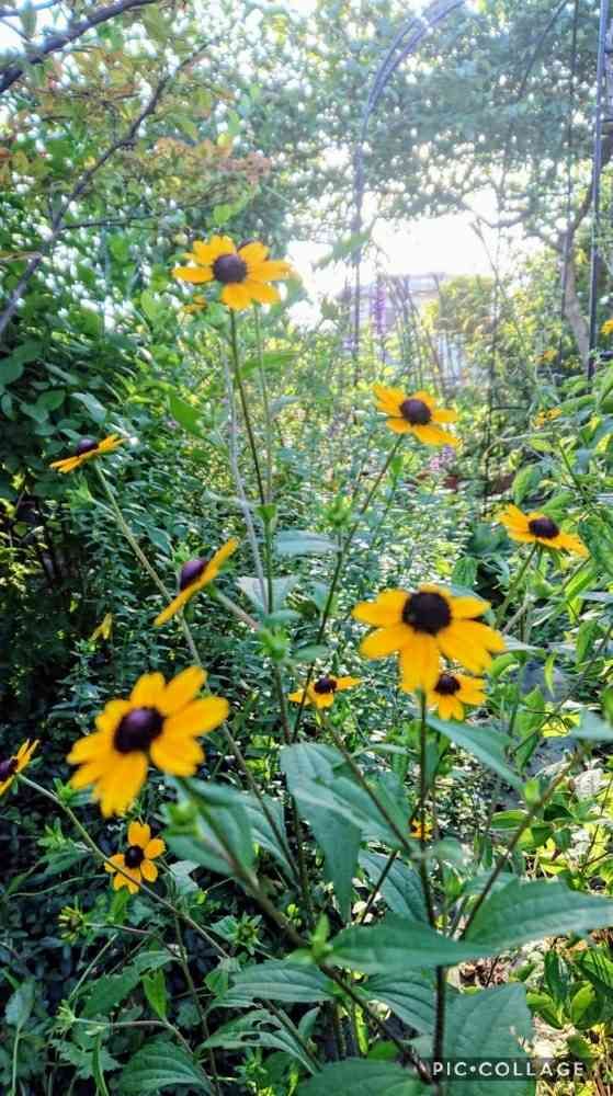 エキナセア、ルドベキア、夏のお花が大好きです 三尺バーベナーが咲き乱れフロックスのピンクが華やいでます
