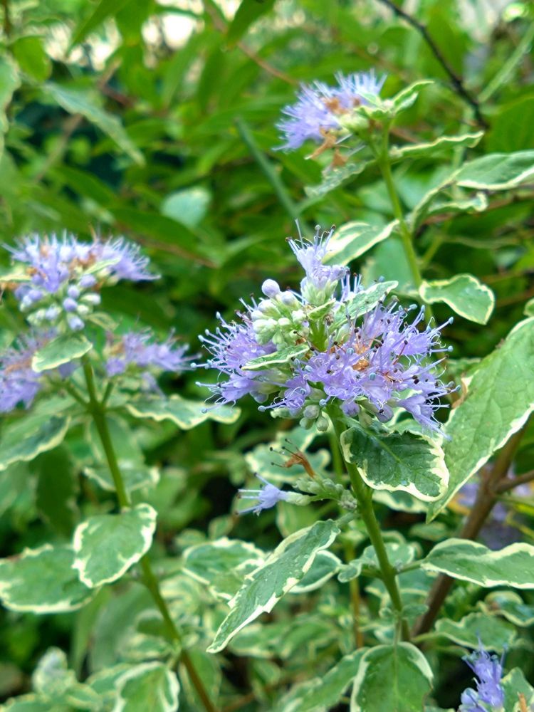 ③カリオプテリス・ホワイトサンライズという名前だけれど、斑入りの段菊の仲間のようです♬.*゚