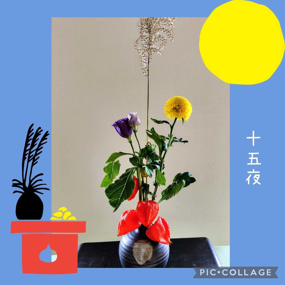 お月様に見立てて いつも🎑の時はホオヅキと丸菊買って来ます🎵