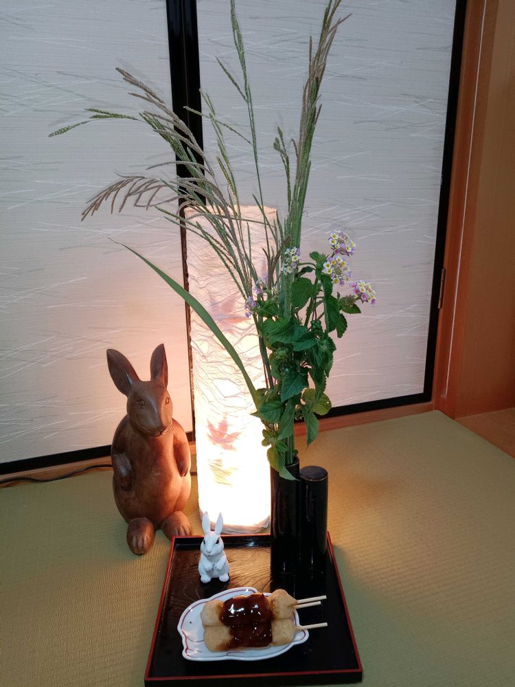 今日は、中秋の名月です〜野の花と、お団子、兎を添えて✨🍡🐇🎑