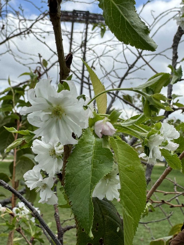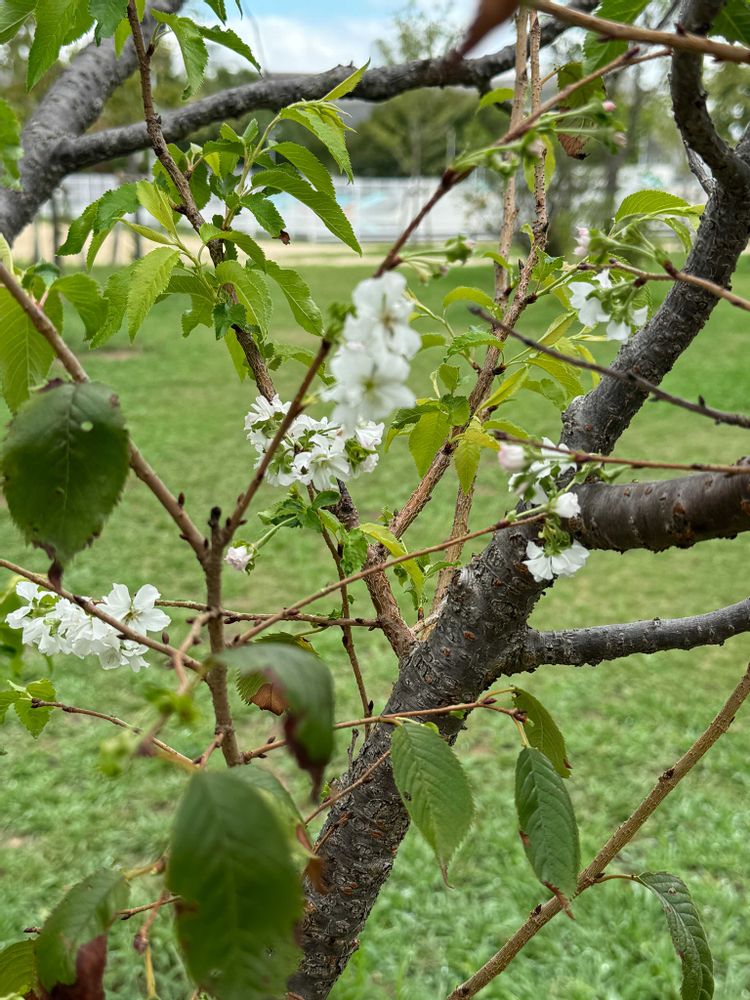 公園散歩🚶♀️で遠目に白い花が咲いている木があったので、近づくとジュウガツザクラが花を着けていました。