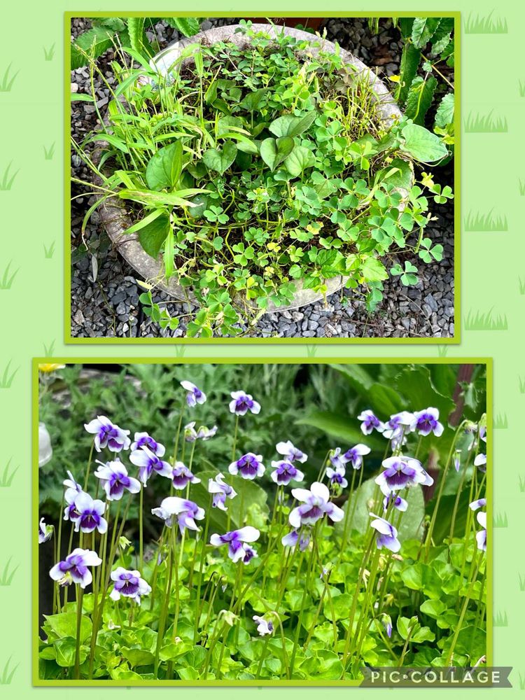 ⬆️ ドクダミ、カタバミ、メヒシバ、コニシキソウ、エノキグサ、、、雑草に鉢を侵略されています。