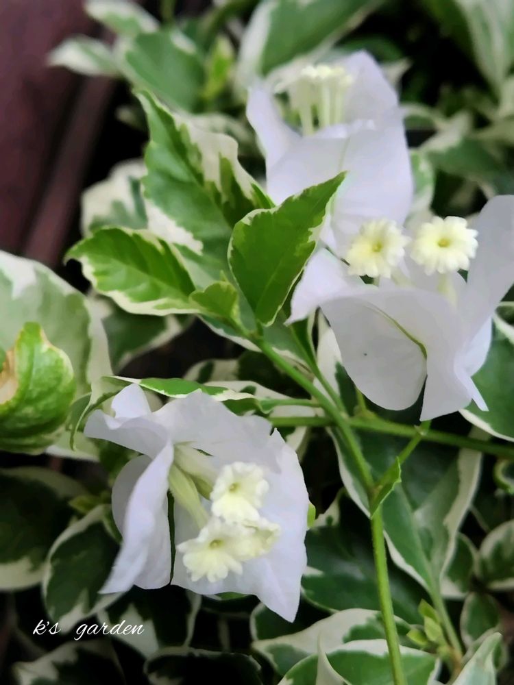 1⃣大切に育ててる斑入り葉のブーゲンビリアさんが咲きました😂