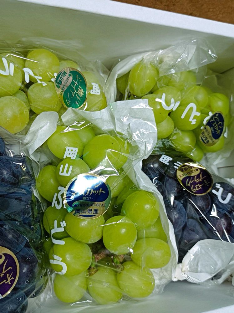 @hannon le. さん こんばんは☺️四万十市今日は晴れとって暑かったです🥵岡山県笠岡市の方とのお花繋がりで送って下さいました🍇オーロラブラックというのは初めて観ました🍇大粒で皮ごと食べられて甘いけどさっぱりしていてとっても美味しい😋四万十市はかなり僻地なので岡山の葡萄は中々販売されていません😅GS繋がりに感謝😍💕笠岡の葡萄や桃を作られてるご夫婦に感謝です💓大昔、岡山県民(倉敷市民)だった頃に学校から帰る途中に宅急便を扱ってるお店のおばさんがネギを持って帰られぇって畑から採ってきてくれて家に持って帰ってたのを思い出しました🌱人と人との繋がりに感謝😍💕